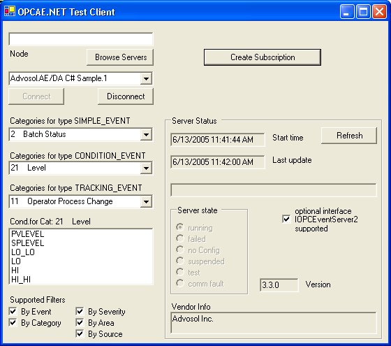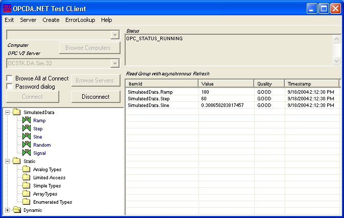 The test client can also be used as a development helper tool. The server can be browsed to get the items supported by the server and the item names can be copied into the code of a client being developed.
